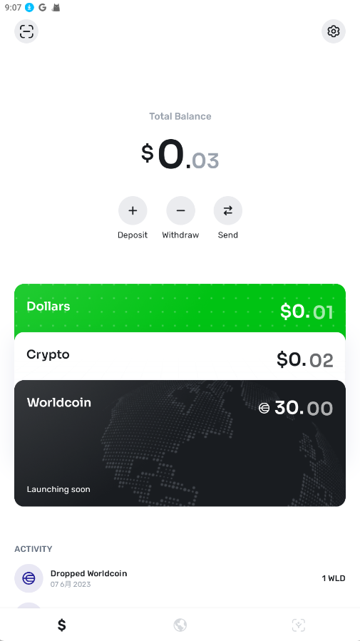 通过了虹膜认证,并且绑定了手机号和邮箱,我们就可以进入World APP界面。