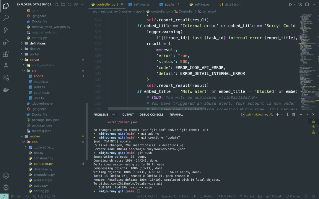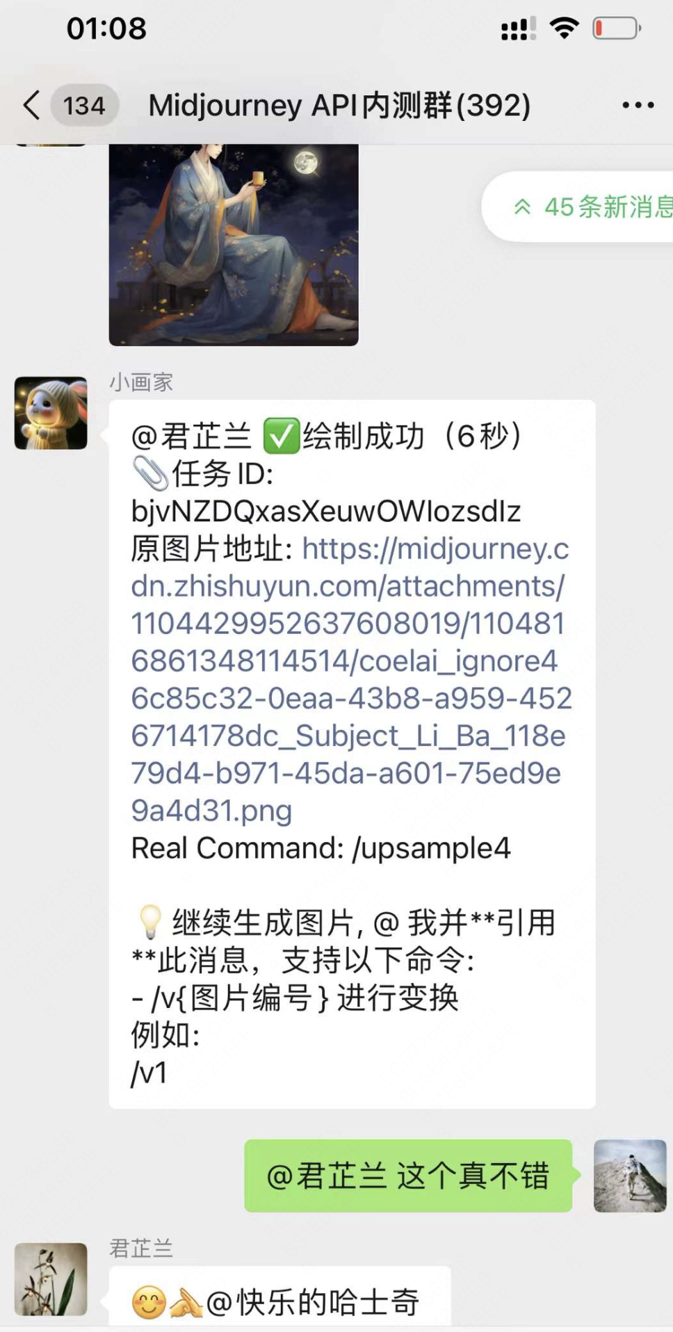 # 启动程序安装依赖```bashpip install -r requirements.txt```启动程序```bashexport WECHATY_PUPPET_SERVICE_TOKEN=xxxexport ZHISHUYUN_CHATGPT_35_TOKEN=xxxexport ZHISHUYUN_MIDJOURNEY_TOKEN=xxxpython3 main.py```然后日志会打出二维码,可以扫码登录> tip> 可以通过命令行参数(小写)覆盖环境变量的配置,如> ```bash> python3 main.py -zhishuyun_midjourney_token xxx2> ```## 使用Docker创建文件Dockerfile(放在项目目录)```DockerfileFROM python:3.9-busterCOPY requirements.txt requirements.txtRUN pip install --trusted-host https://repo.huaweicloud.com -i https://repo.huaweicloud.com/repository/pypi/simple -r requirements.txt &&\rm -rf root/.cache &&\rm -f requirements.txt \COPY src app/srcCOPY main.py app/main.pyWORKDIR appCMD ["python3", "main.py"]```构建镜像```bashcd <项目目录># we-mid:0.1 为tag,可以自行设置docker build -t we-mid:0.1 .```启动服务```bashdocker run --name we-mid \-e WECHATY_PUPPET_SERVICE_TOKEN=xxx \-e ZHISHUYUN_CHATGPT_35_TOKEN=xxx \-e ZHISHUYUN_MIDJOURNEY_TOKEN=xxx \--restart unless-stopped -d \we-mid:0.1```# 依赖服务## GPT及Midjourney- GPT使用[ChatGPT 3.5 API](https://data.zhishuyun.com/documents/59fb1199-6694-4afb-a222-3554d7f7d05a)- Midjourney使用[Midjourney Imagine API](https://data.zhishuyun.com/documents/58ea7cc1-c685-40c3-a619-f29f9ac5d8f4)## Wechaty[WeChaty](https://github.com/wechaty/wechaty)是一个聊天机器人框架,支持多种IM系统,如微信、Lark等。目前有一些成熟的付费Puppet Service提供:- [WorkPro](https://wechaty.js.org/docs/puppet-services/workpro),完美支持企业微信- [PadLocal](https://wechaty.js.org/docs/puppet-services/padlocal),以ipad副设备登录微信,需要一个容器做代理- [Paimon](https://wechaty.js.org/docs/puppet-services/paimon),以ipad副设备登录微信,无需额外容器,但功能有一些限制可以在[wechaty/puppet-padlocal](https://github.com/wechaty/puppet-padlocal)看下功能区别。# 逻辑简述- 在`midjourney_bot.py`中实现WechatyBot用于监听WeChaty的各种事件- 主要逻辑都写在了`on_message`中- 原理是对字符串的处理,解析出用户发送的命令,判断执行哪些逻辑或是回复哪些消息- `id_generator.py`中简单实现了一个字符串编解码的过程,用于生成任务ID- `img_compress.py`中简单实现了一个类似微信朋友圈图片压缩的功能- `translate.py`和`zsy_midjoureny.py`中分别调用相应Api,发送http请求,取回结果# 其它WeChaty新版本已经支持了插件式开发(还没有研究),代码可能更简洁清楚