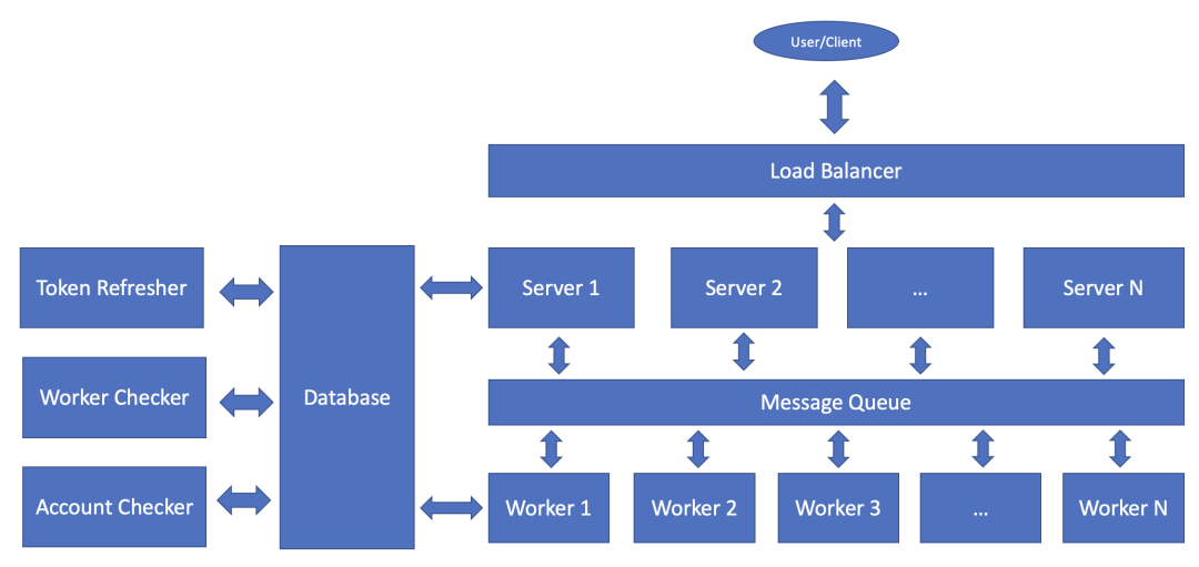 本 API 采用了多主多从架构,能够支持高可用和高并发,整体架构图如下: