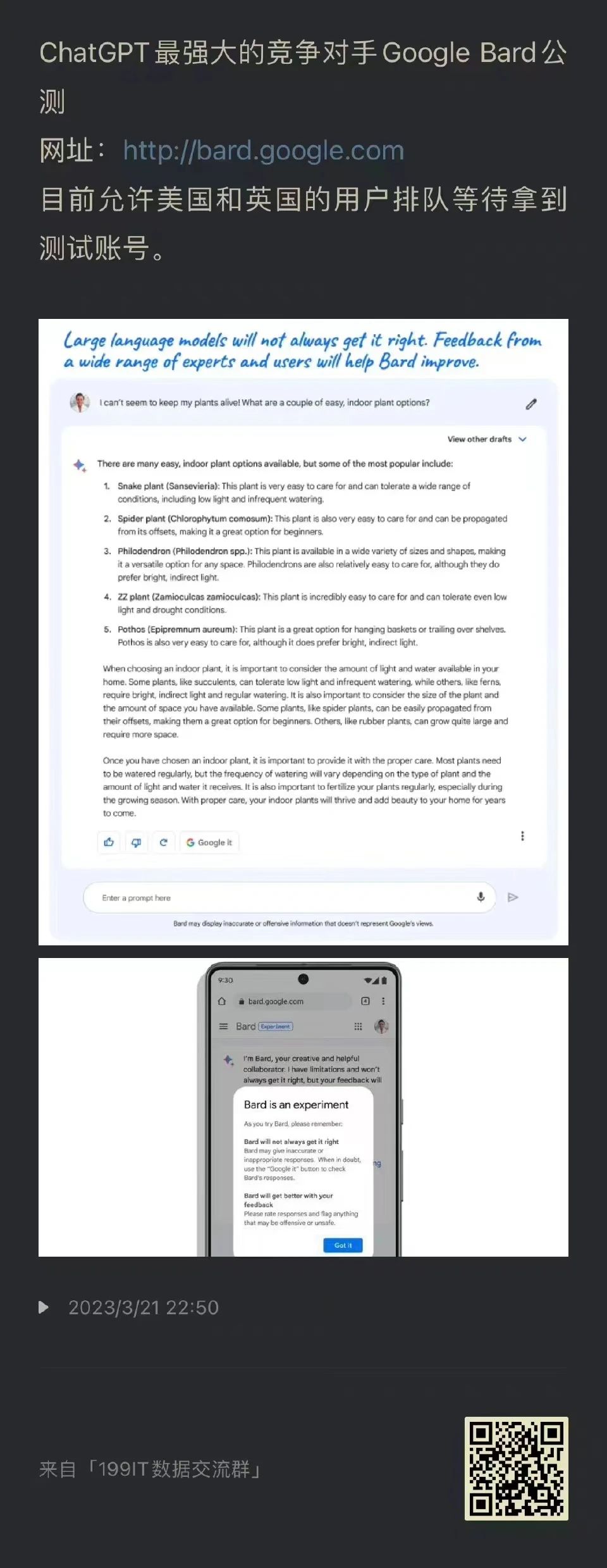 3月21日,据Google 官方博客发布消息,谷歌向公众开放其人工智能聊天机器人Bard的访问权限。美国和英国用户可以预约。