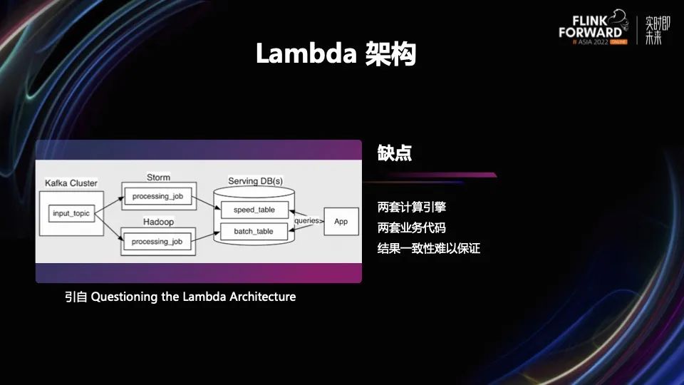 过去几年,一直都在尝试解决 Lambda 架构带来的问题,上图列举了其中三个比较典型的项目。