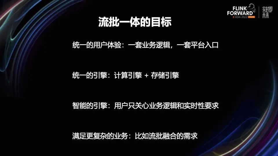 满足更复杂的业务,比如流批融合需求。目标是要能支持更复杂的业务需求,比如有状态作业的流批混跑。