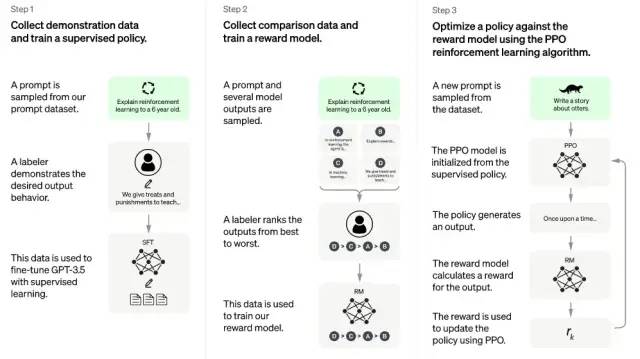 为何三段式的训练方法就可以让ChatGPT如此强大?其实,以上的训练过程蕴含了上文我们提到的关键点,而这些关键点正是ChatGPT成功的原因: