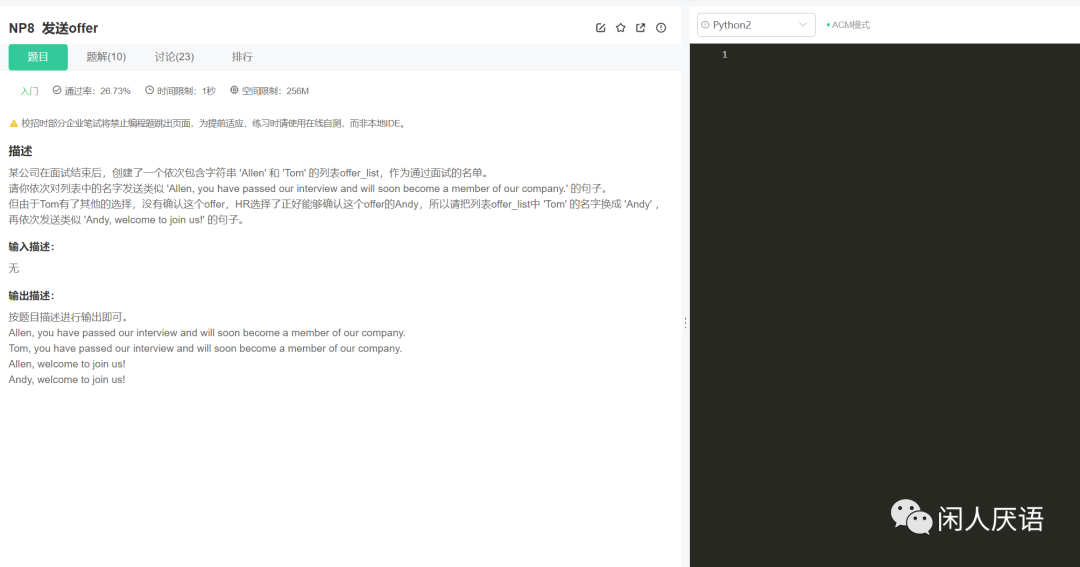 传送门: https://www.nowcoder.com/link/pc_gzh_xcssj_python