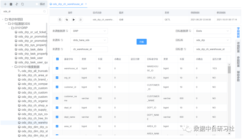 批量数据导入我们采用的是目前最主流的开源组件 DataX。自研的 DataOps 大数据管理平台在开源 DataX 的基础上做了很多封装,我们只需要创建数据同步任务,选择数据来源和数据目标表,即可自动生成字段映射和 DataX 规范的 Json 配置文件。