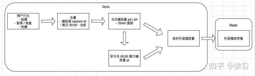 1.1、以播放量为例。在启播、暂停、完播、心跳等多个条件下,会同时有多个点,要进行去重。同时基于视频回答、视频的关系和双作者联合创作的关系,需要叠加,同时保证在父子内容异常状态的情况下过滤其中部分播放行为。