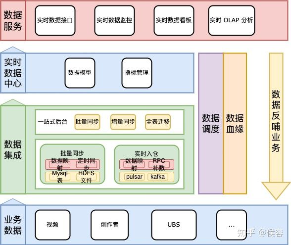 在建设实时数据模型的过程中。需要依赖众多业务的数据,同时需要针对数据逐层建设数据模型。摸索并搭建了实时数据集成系统和实时调度系统,并下沉到工具层。