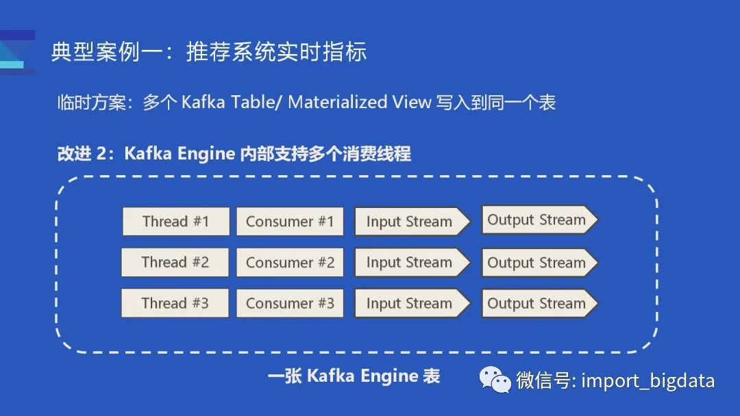 第二个改进是在 Kafka 表内部支持了多线程的消费: