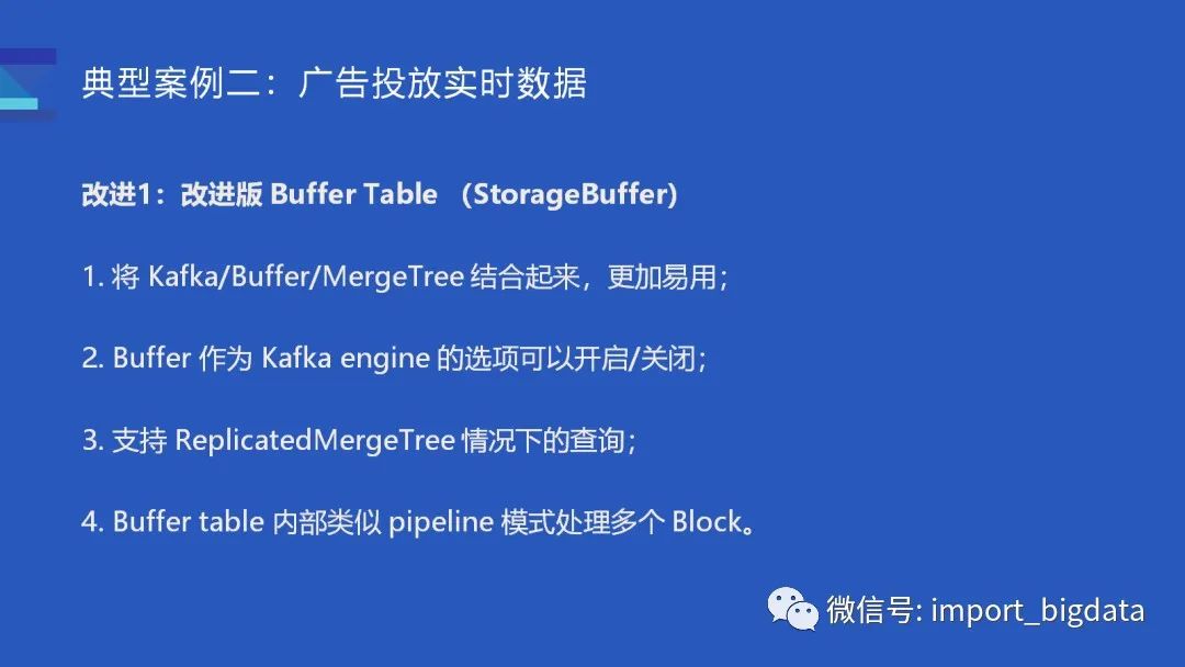(2) 把 Buffer 内置到 Kafka engine 内部, 作为 Kafka engine 的选项可以开启/关闭;