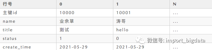 如上述表格所示,传统的 MySQL 数据库的每一行数据都是物理的存储在一起的。如果我要取 id 等于 10000 这一条数据的 name 列,那我就必须要把这一行数据读取出来,然后取 name 列。