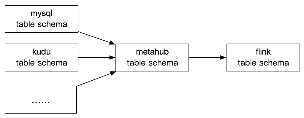 类型系统转换:因为元数据中心有一套自己的类型系统,我们只需要实现元数据中心这套类型系统到Flink类型系统的转换就可以实现任何元数据中心支持数据源的Table的Schema到Flink Table Schema的转换。
