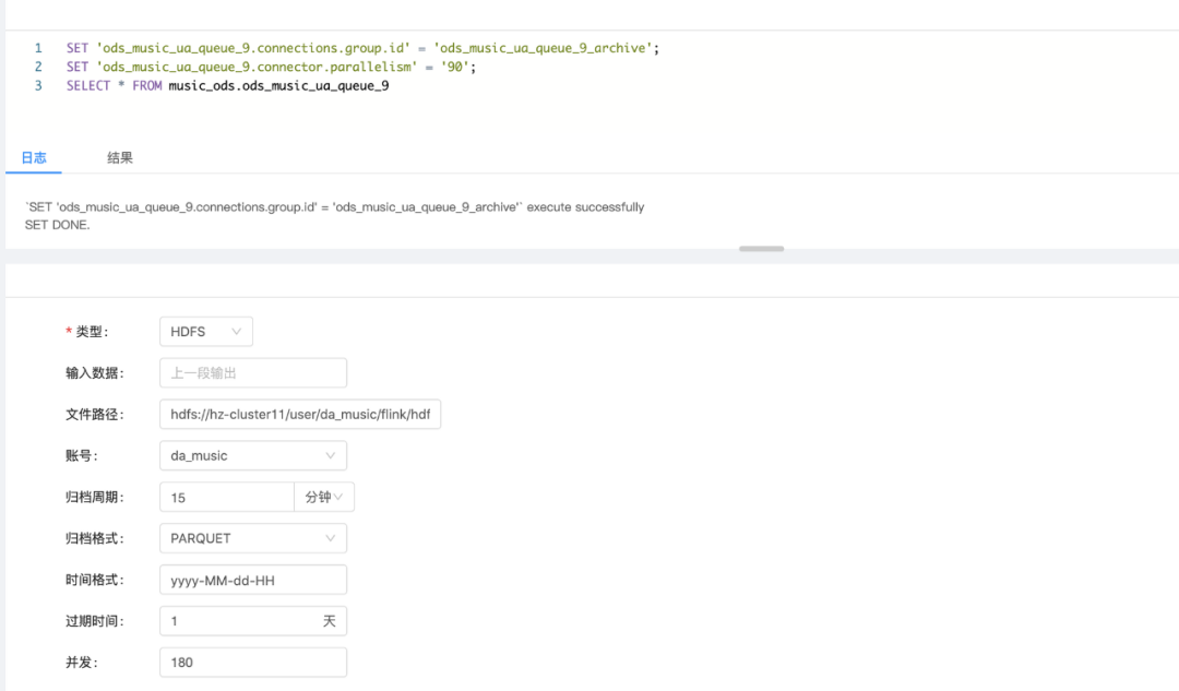 如HDFS输出组件我们开发了过期时间的功能做归档文件的过期自动清理,这个功能纯SQL是没有办法优雅的实现的,除了常用的数据源以外我们还实现了我们音乐自研的一些系统的SINK,如监控系统Pylon、索引系统NSearch等这些都可以方便在SINK组件中实现。
