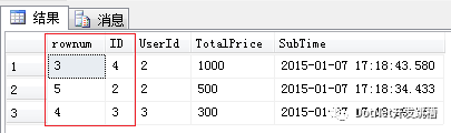 图中的row_num列就是row_number函数生成的序号列,其基本原理是先使用over子句中的排序语句对记录进行排序,然后按照这个顺序生成序号。over子句中的order by子句与SQL语句中的order by子句没有任何关系,这两处的order by 可以完全不同,如以下sql,over子句中根据SubTime降序排列,Sql语句中则按TotalPrice降序排列。