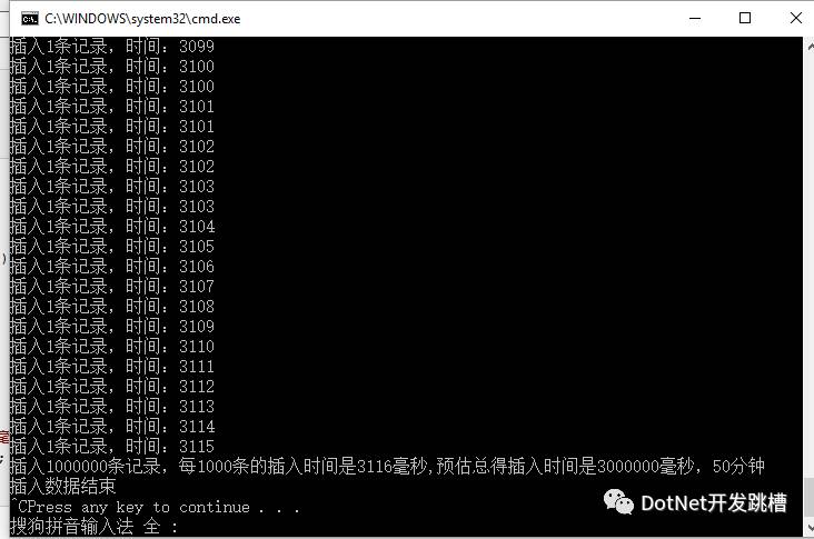 我们会发现插入100w条记录,预计需要50分钟时间,每插入一条记录大概需要3毫秒左右。