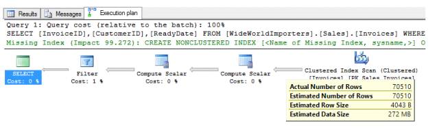 The Query Processor estimates that implementing the following index could improve the query cost by 99.272%.