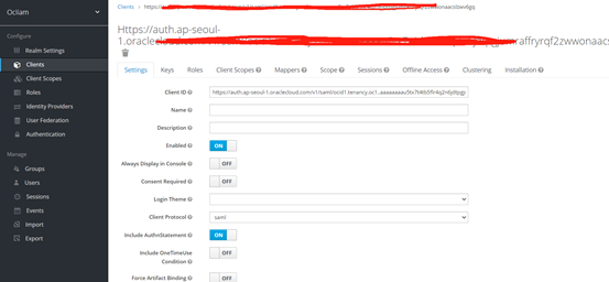 3. 在KeyCloak中,将Oracle OCI配置为应用程序