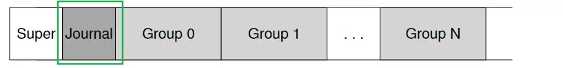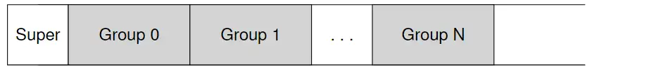 在Linux中,ext2文件系统将磁盘划分成若干个block groups,每个block group包含一个inode bitmap, data bitmap, inodes和若干个data blocks,它没有使用日志。