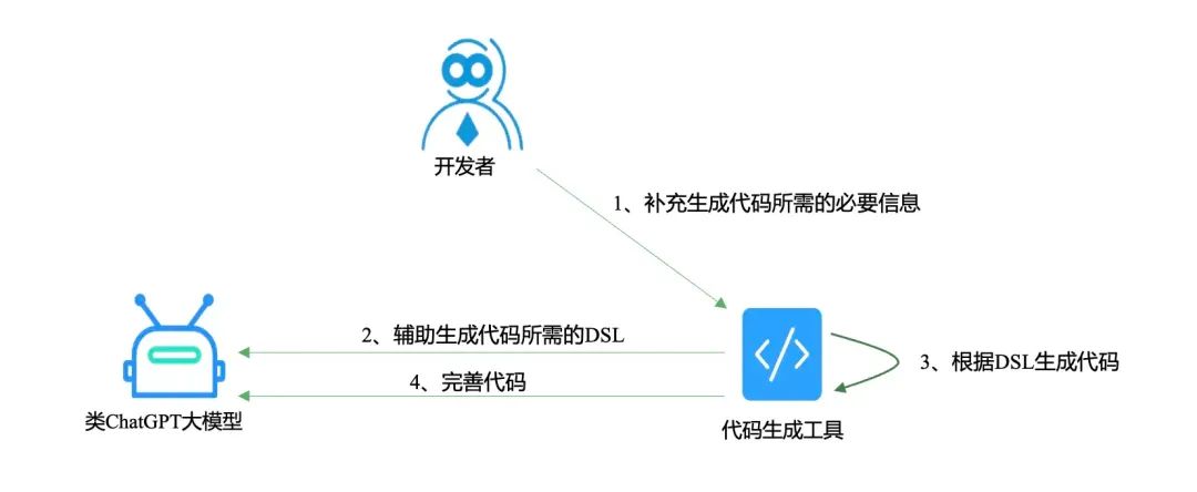 直到体验了 ChatGPT,在震惊于它强大的能力同时,我们也就“如何将 ChatGPT 引入我们的代码生成工具来提升研发效能”进行了思考,并且快速搭建了一些 Demo 验证效果。