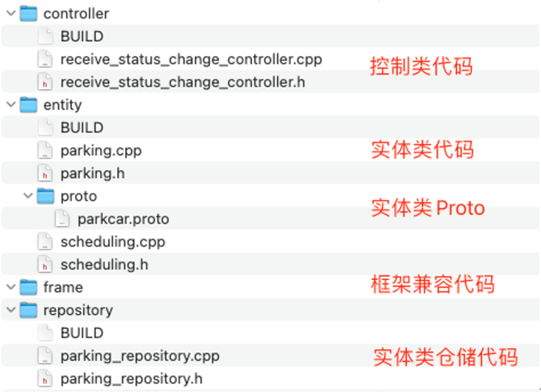 我们打开上述目录中的头文件、PROTO 文件不仅满意的点了点头。但当我们点开泊车类的 .cpp 文件见到下面内容不仅吐槽:生成的代码并不能直接运行!