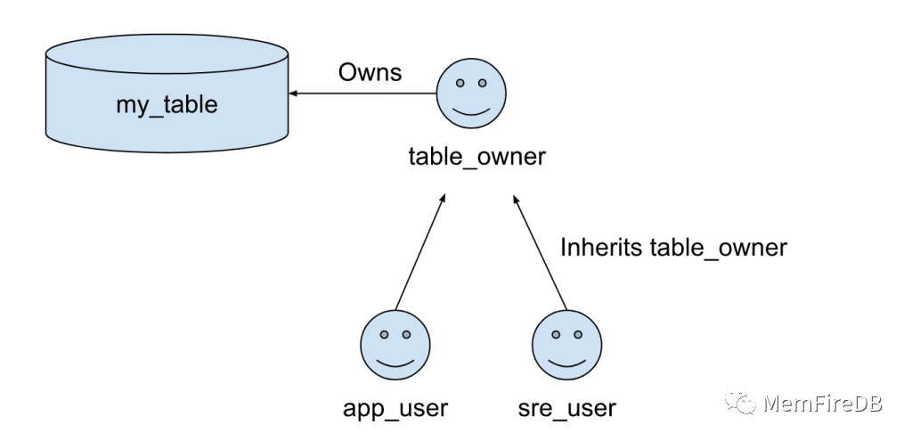 请注意,这些默认权限仅在授权者创建新表时应用。例如,假设我们有两个所有者角色 table_owner1