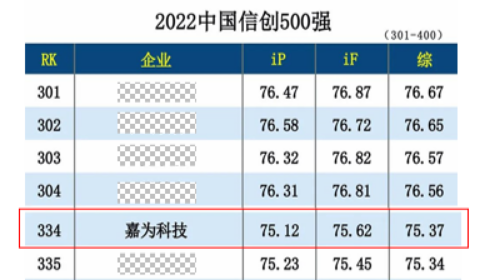3月23日,中国科学院《互联网周刊》联合eNet研究院、德本咨询联合发布“2022中国信创500强”榜单,嘉为科技实力入榜,连续三年荣登500强榜单。