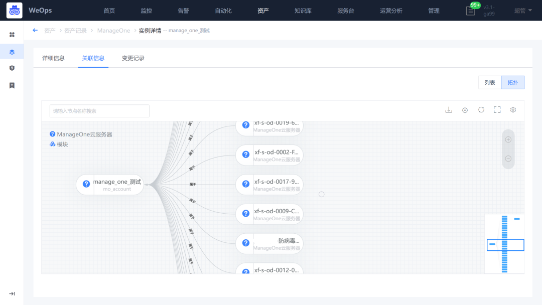 云平台的相关资源经常变化,对资产的记录和更新往往不及时,影响资产盘点和日常运维工作,为此WeOpsV3.16版本继续增加对ManageOne云平台自动发现和纳管功能,可以帮助企业客户更好地管理和优化云资源,提高运营效率和安全性,从而更好地满足企业发展需求。