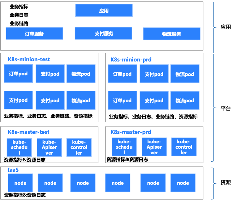 单体应用拆分微服务架构后,服务数量剧增;同时,观测对象从虚拟机细化到POD、容器级别,实例数量指数级增长。