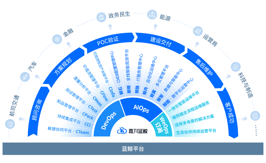 嘉为蓝鲸深耕能源领域,为其提供一站式研运数字化转型解方案,推动能源行业业务转型落地,目前助力诸多能源领域客户实现IT运营转型。