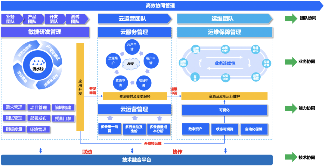 依托嘉为蓝鲸研运一体化平台,企业可以落地自主的研运管理体系,实现资源整合、管运分离、数据融合、业务贯通,提高研运工作的效率,降低运营成本、人力成本,加强数据归集,通过资产驱动、数据消费提升业务线效率,实现“低成本、高效率”的数字化转型。