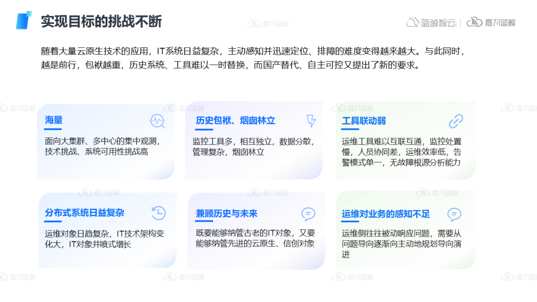 与此同时,云原生技术下的IT系统日益复杂,历史系统、工具难以一时替换,而国产替代、自主可控又提出了新的要求,实现目标的挑战也越来越大。