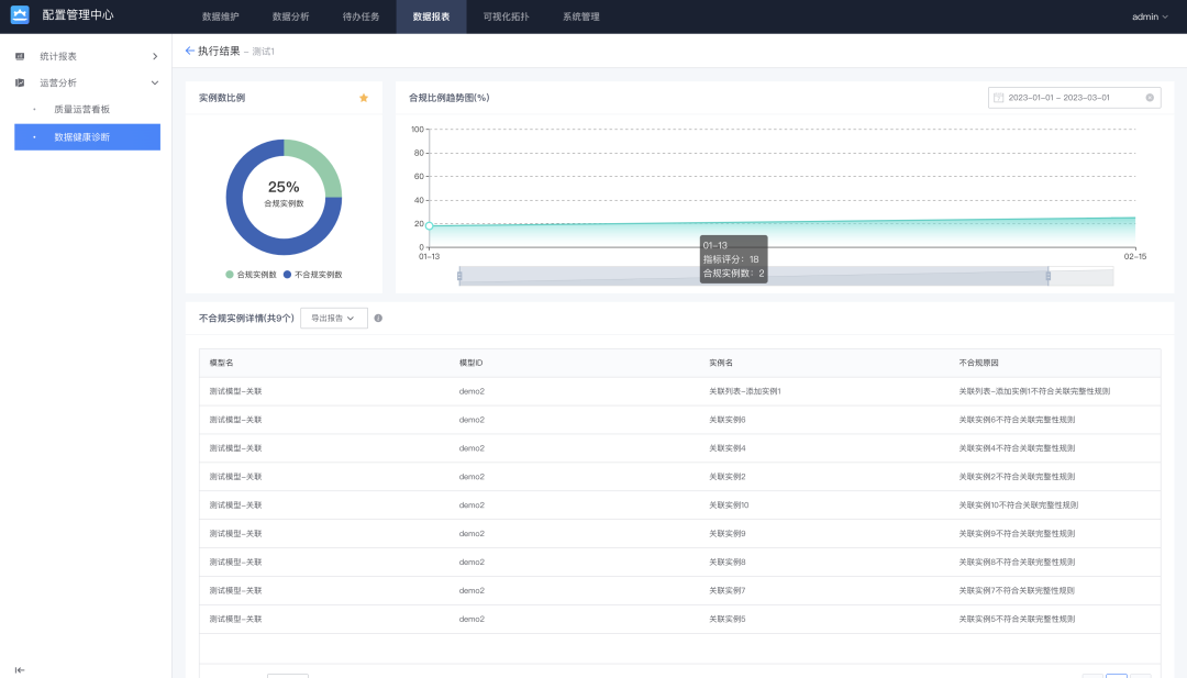 这样可以给到用户和领导清晰、明确的质量问题分析情况,体现平台的运营价值,稳定用户对CMDB数据质量的信任。