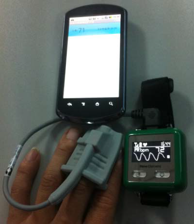 此外,我们还提出并实现了一个基于智能手机的自动调节枕头的系统(见图2),该系统在检测睡眠呼吸暂停的同时,还能及时作出干预以终止呼吸暂停事件。该系统主要使用血氧传感器实时检测睡眠呼吸暂停事件,枕头的高度和形状可以通过内置气囊自动调整,从而调整患者的睡眠体位,使原来阻塞呼吸道的软组织向两边倾倒,进而最大程度地打开呼吸道以终止睡眠呼吸暂停事件。枕头调整高度和形状后,传感器持续监测血氧信号,以评估枕头调整的有效性,并帮助选择合适的调整方案。因此,这形成了一个实时反馈控制系统。我们对40名患者进行了临床实验,结果表明,使用这种新型智能枕头系统,睡眠呼吸暂停的持续时间和次数都降低了50%以上。