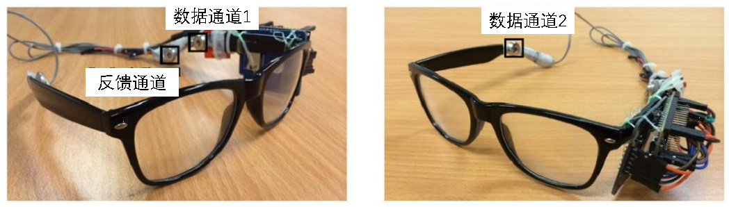 首先,我们开发了一套智能眼镜尝试弥补此前计算摄入热量方式的不足(见图5)。颞肌下部是眼镜柄接触头骨的地方,而颞肌是咀嚼肌之一。因此在眼镜柄上嵌入EMG肌电传感元件能捕捉颞肌的肌肉活动,感应咀嚼动作,从而检测食物摄入量。同时,咀嚼肌的电活动水平、咀嚼周期持续时间、咀嚼周期数等与食物质地密切相关。因此,辅以机器学习技术,该智能眼镜可以有效判断食物的类型、数量,最终有效计算摄入的热量。大量实验证实,该系统对咀嚼次数计数的准确率为96%,对五种食物进行分类的准确率达到80%~90%。