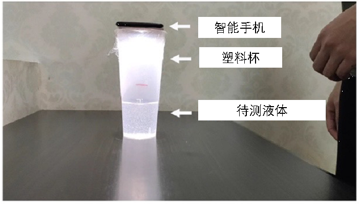 除了营养,食物的物理特性(如黏稠度)也是一个需要被关注的维度,特别是对老年人或者患有特定疾病的人群来说。当摇晃杯子时,杯子中液体恢复稳定的速度与液体的黏稠度有关。利用这一规律,我们通过连续测量晃动液体的高度,根据杯子的容量及液体恢复稳定的时间反推得知其黏稠度。我们借助智能手机的相机连续测量晃动液体的高度。基于光的折射原理,相机能通过连续帧获取光流,感应液体表面波的高度变化。因此,只要将智能手机放在杯子上,轻轻摇动杯子,便能知道其中液体的黏稠度(见图8)。利用先进的机器学习算法对捕捉的视频帧进行分析,在可控条件下能够以96.52%准确度对液体的浓度进行三分类。