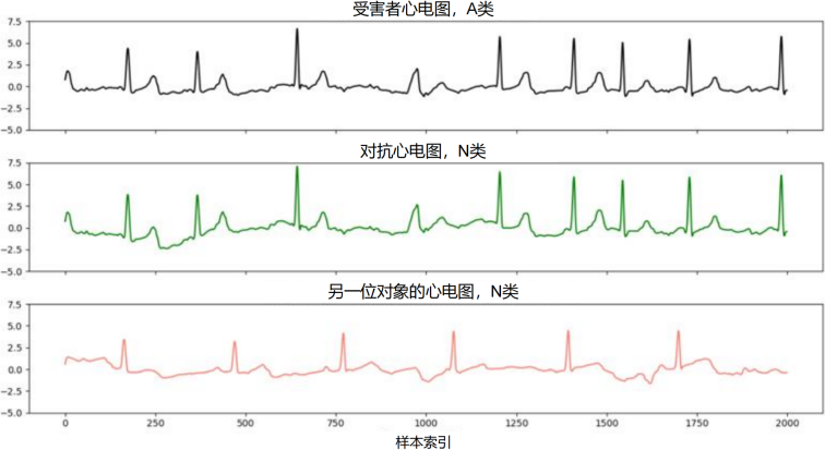 最近有一些备受瞩目的深度学习网络在心电图分类和诊断上能达到和人类专家相当的准确度。我们分析了心电图的不同特性,并研究了两种对抗性攻击。第一种攻击,攻击者可以直接在心电图记录上添加扰动攻击心电图分类系统。相较于传统的攻击方法,我们加入了平滑度量来量化曲线扰动的可感知性,利用它们生成不可疑的对抗性心电图。第二种攻击,攻击者通过物理过程实时向心电图注入扰动。我们分析了这种攻击的特点,并在攻击策略中考虑了它们。我们在现有的数据集上验证了两种攻击的有效性(见图9),揭示了基于DNN的心电图诊断系统在对抗攻击下的脆弱性。