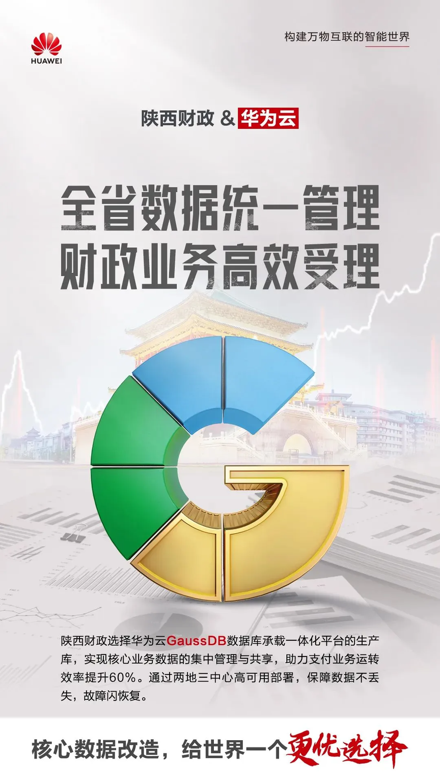 - 陕西财政厅:华为云提供了“一个大平台,四个标准化”的顶层设计架构,实现了一套库管理全省数据,真正做到了数据集中化安全管理。