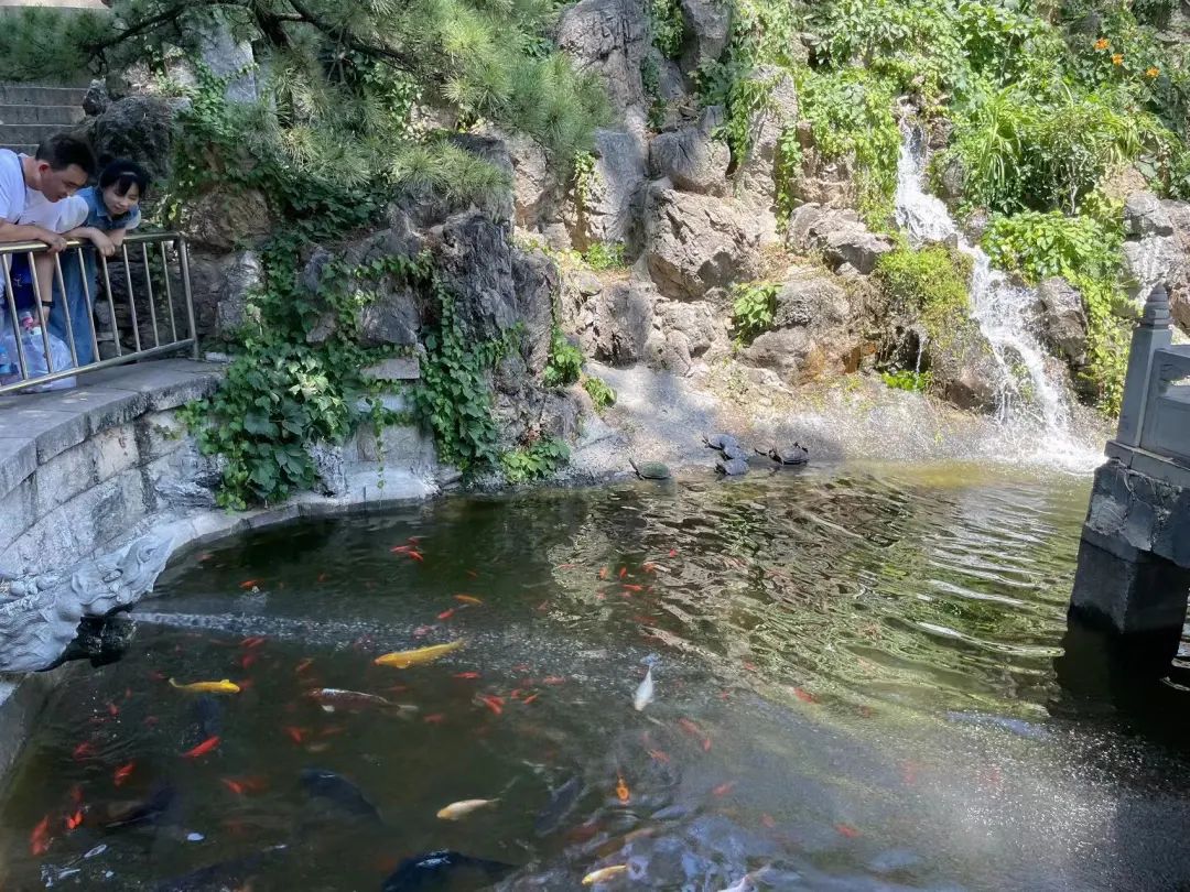 里面的锦鲤还是很舒服的,还有各种乌龟,对于它们来说真是难得的好日子。孩子说要摸摸锦鲤的头,这样可以沾到桃花运,我笑着说,你沾点好运就行了。
