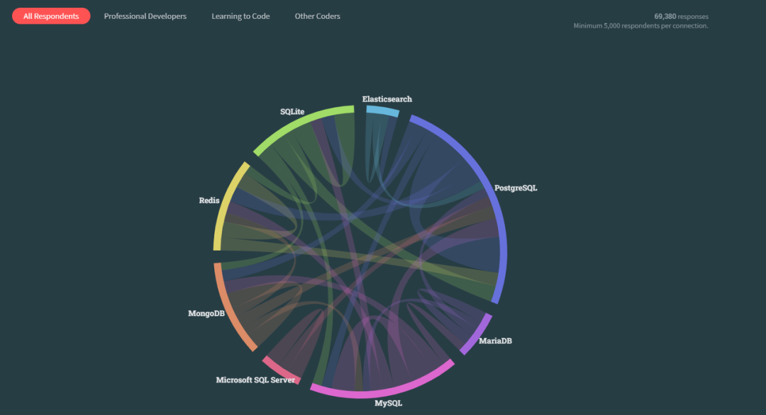 在想要学习的数据库调查中,正在使用MySQL数据库的受访者,其中有12,824人想要学习PG。其次,1万余人正在使用 PostgreSQL 用户明年想使用 Redis;9000多 Redis 用户明年想使用 PostgreSQL,这表明前十名数据库中有互补的情况。