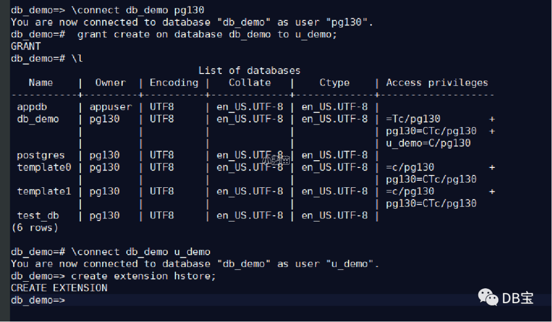 1[pg130@iZm5ehqfjhnsbtxrzrnh2zZ ~]$ psql -d postgres