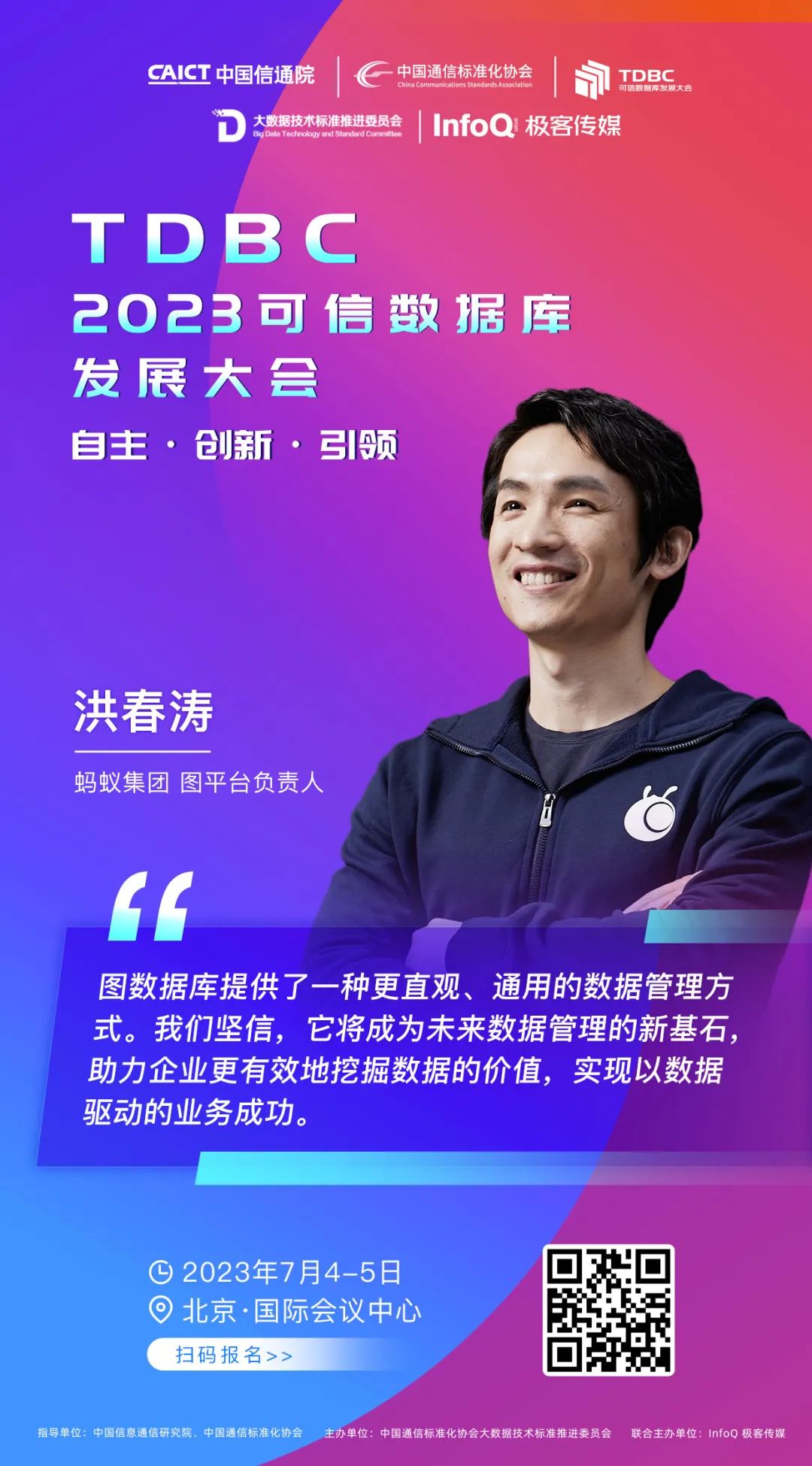 在当前数据要素时代,数据安全和数据可信的重要性日益突出。从金融、电信到各行各业,数据库可信生态的构建都变得愈加重要。由中国信息通信研究院、中国通信标准化协会指导,中国通信标准化协会大数据技术标准推进委员会(CCSA TC601)主办的“2023 可信数据库发展大会”将于 2023 年 7 月 4 日 -5 日在北京国际会议中心隆重召开。