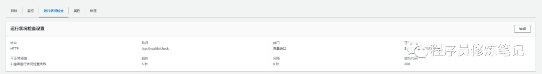 关于Service我们这里不再赘述,我们主要关心和AWS相关的配置,也就是annotation的信息,anntation这里我们主要配置的是目标组里的健康监测信息,当我们对上述资源文件进行应用以后,目标组上健康检测信息配置和上图将会对齐,如下图: