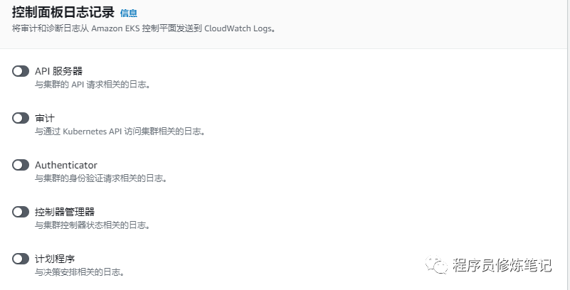 3. 配置控制面板日志,这里我选择全部关闭,这个地方开启会产生额外的CloudWatch费用,大家可以在找错的时候开启,平时保持关闭,当然如果公司自身对费用管控比较宽松的话你也可以一直开着,这个根据公司自身的钞能力来定。