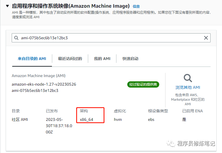 2. 选择操作系统,操作系统这里注意要选择Amazon Linux AMI的镜像,具体的镜像id(ami-id)可以去官网搜索,我这里是ami-075b5ec6b13e12bc3,如下图: