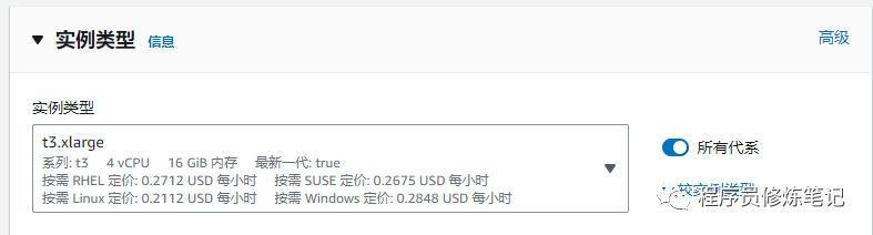 3. 指定实例类型,这里可以指定也可以不指定,如果不指定,则在需要节点组创建的时候进行指定,这里我们假设指定t3.xlarge,如下图: