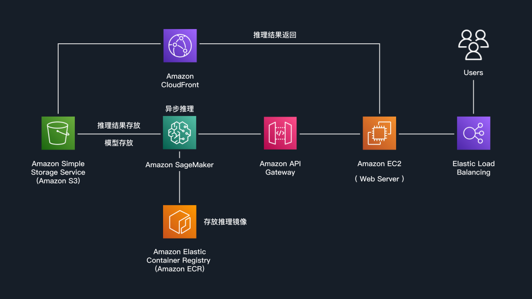 本项目使用的 Amazon SageMaker 则是一项完全托管的机器学习服务,借助 Amazon SageMaker 生产就绪的托管环境,开发人员可以快速、轻松地构建和训练机器学习模型。Amazon SageMaker 不仅支持多种算力机型,还可以实现资源的弹性扩张,能够敏捷适配业务扩展不同阶段的需求。同时,Amazon SageMaker 同一终端节点部署多模型的方式可以帮助企业节省实时部署成本,其异步推理形式还支持“从0扩展”,从而进一步降低推理成本,大大加快 Nolibox 应用机器学习技术的速度。Nolibox 表示:“亚马逊云科技帮助我们的开发人员快速、轻松地构建和训练机器学习模型,并直接实现模型部署,并在过程中协助我们满足弹性算力等资源调度需求。”