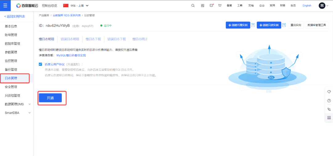 1. 前置操作:用户创建的百度云 RDS 实例需为双机高可用版本,并对实例开通慢日志。