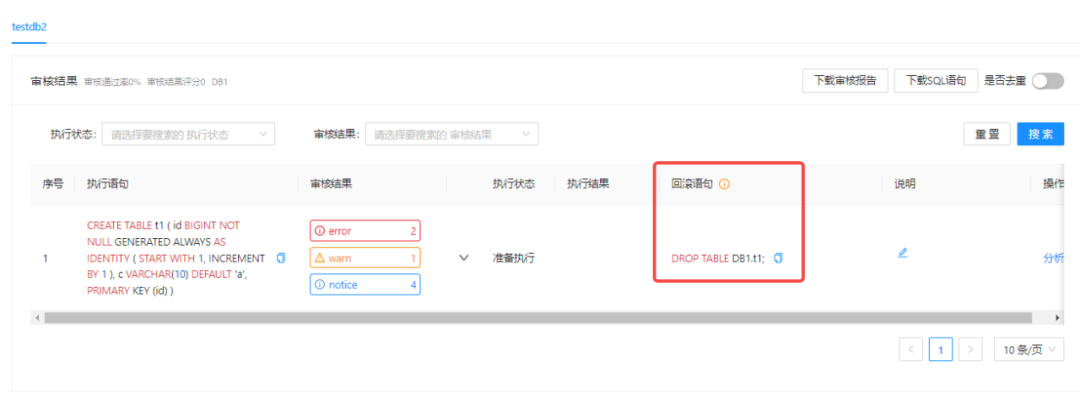 新增 DB2 回滚语句功能:当用户在 DB2 数据源上进行 SQL 审核时,可查看执行语句对应的回滚语句。