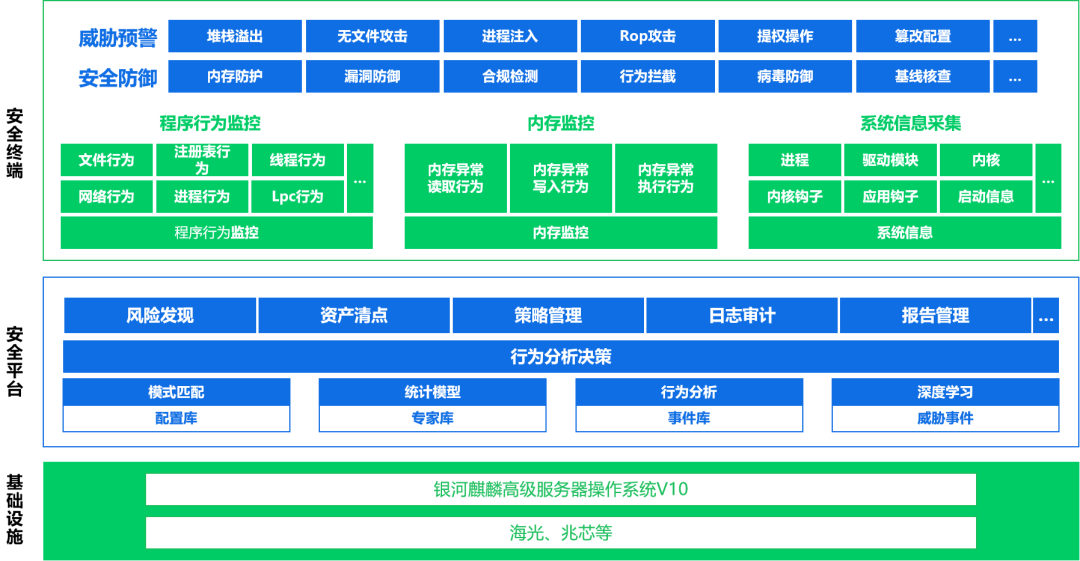 • 全面兼容自主创新:基于银河麒麟高级服务器操作系统V10,兼容国产CPU架构,为国产终端主机提供全面安全防护能力。