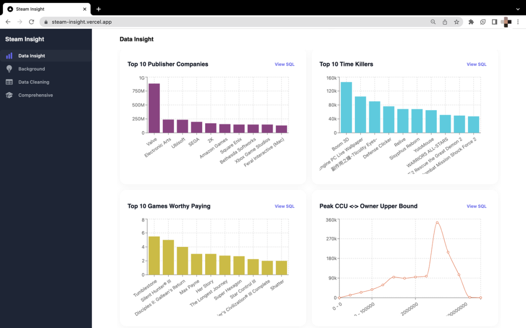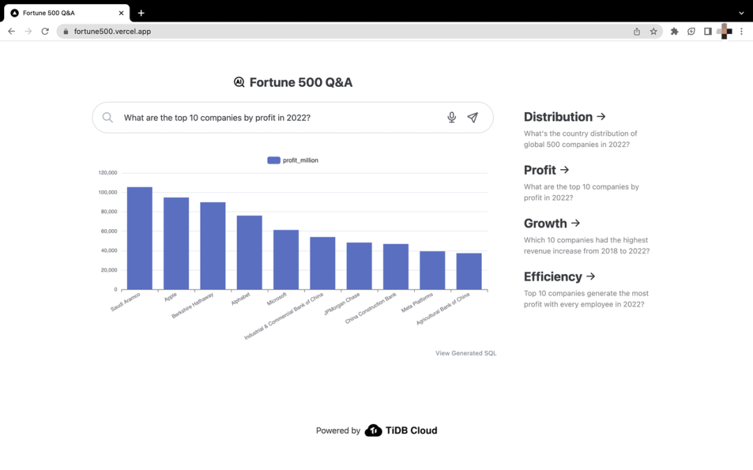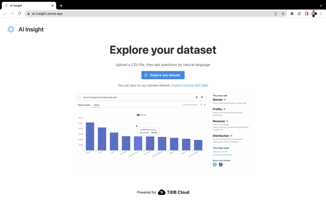 示例项目(依次为:OSS Insight、Steam Insight、 Fortune 500 Insight、Hacker News Insight、 S&P 500 Insight)