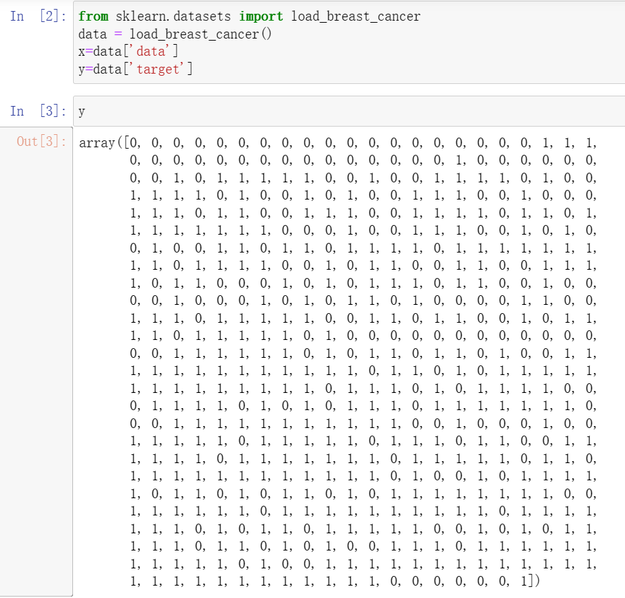 from sklearn.datasets import load_breast_cancerdata = load_breast_cancer()x=data['data']y=data['target']